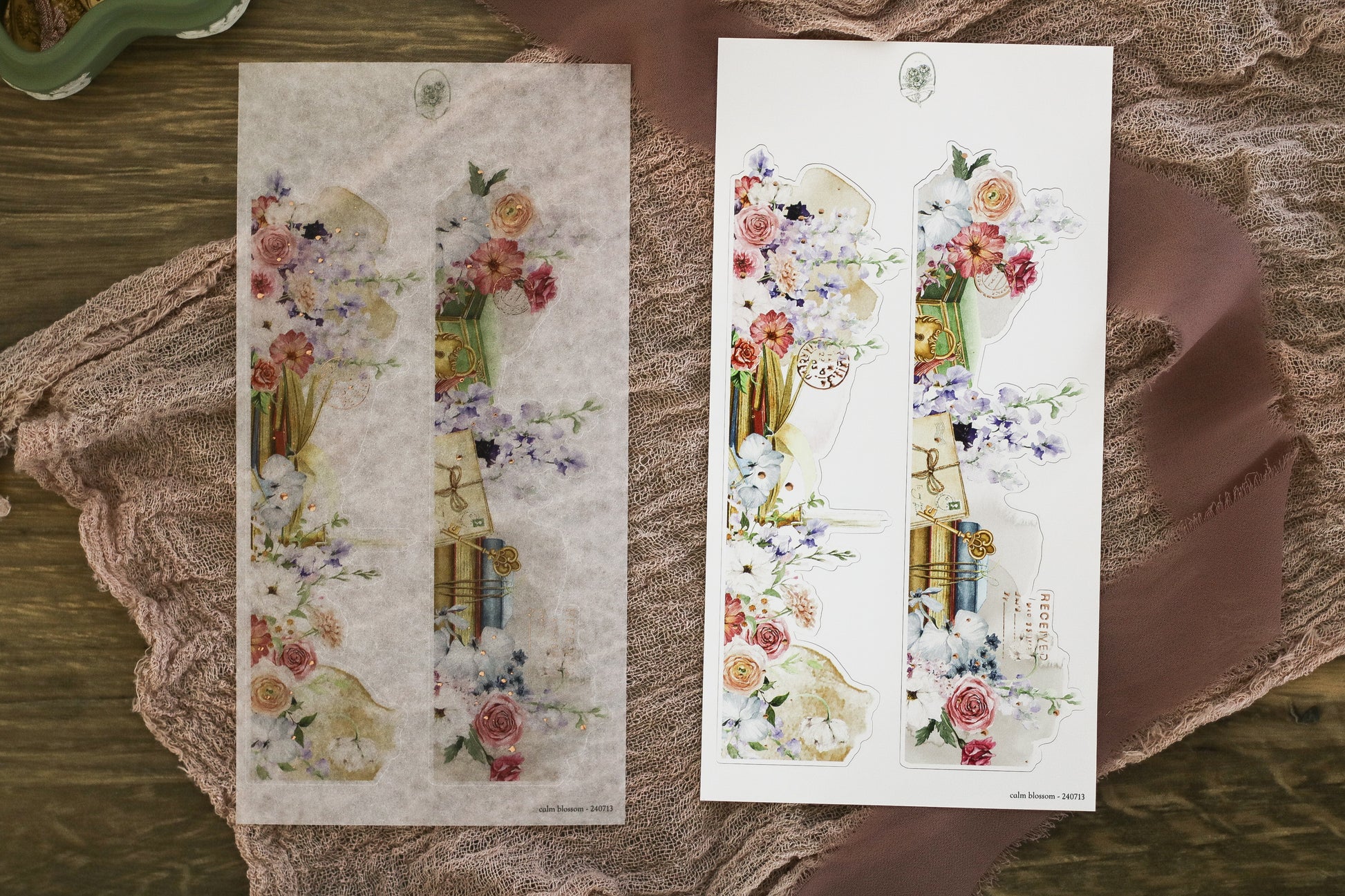 Printed on washi paper (semi-transparent and writable) or premium soft white paper. Please see reference photos for the premium soft white, we've switched the paper colour to a warmer tone for better blending in with most planner/journal.