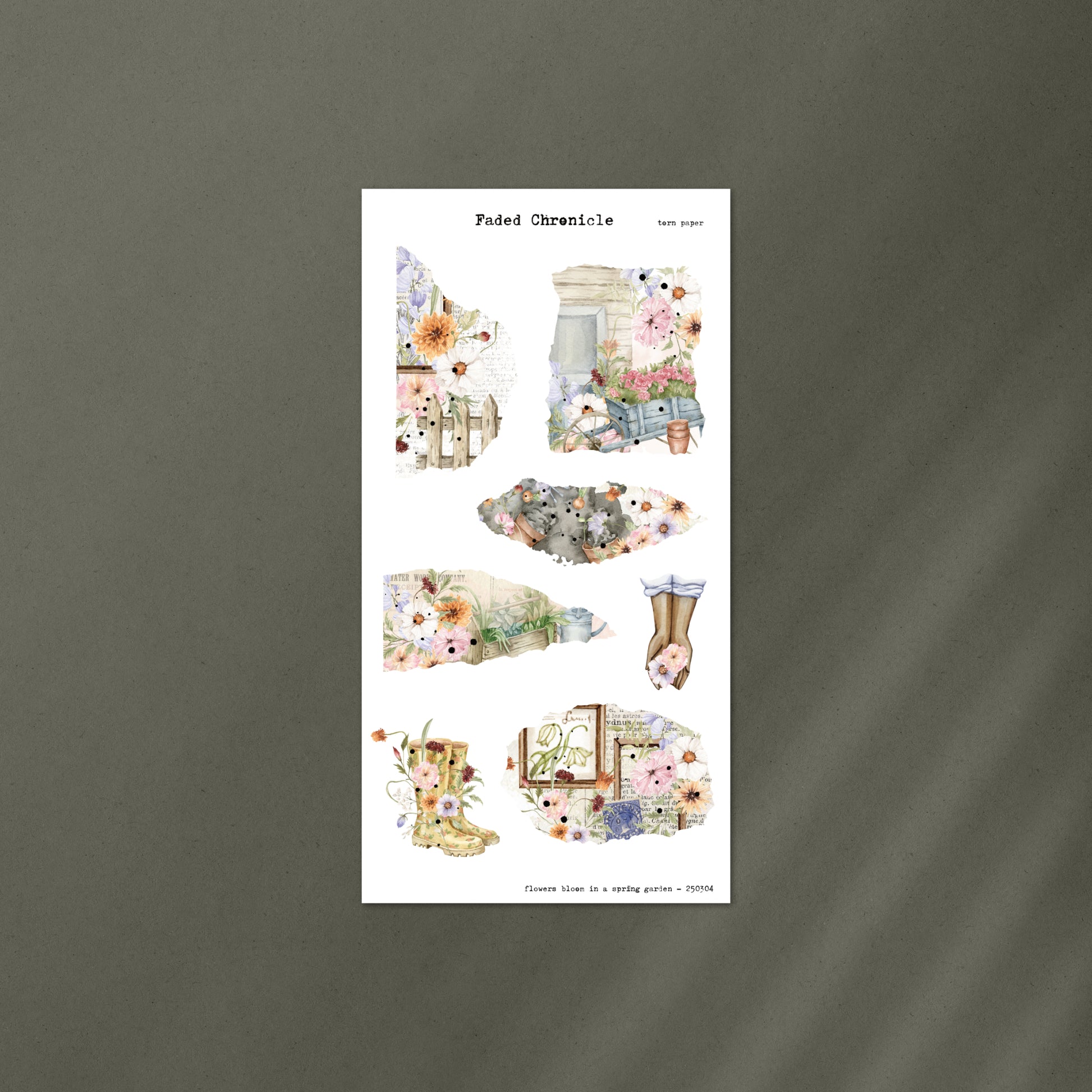 Flowers Bloom In A Spring Garden - Torn Paper (Gold Foil)