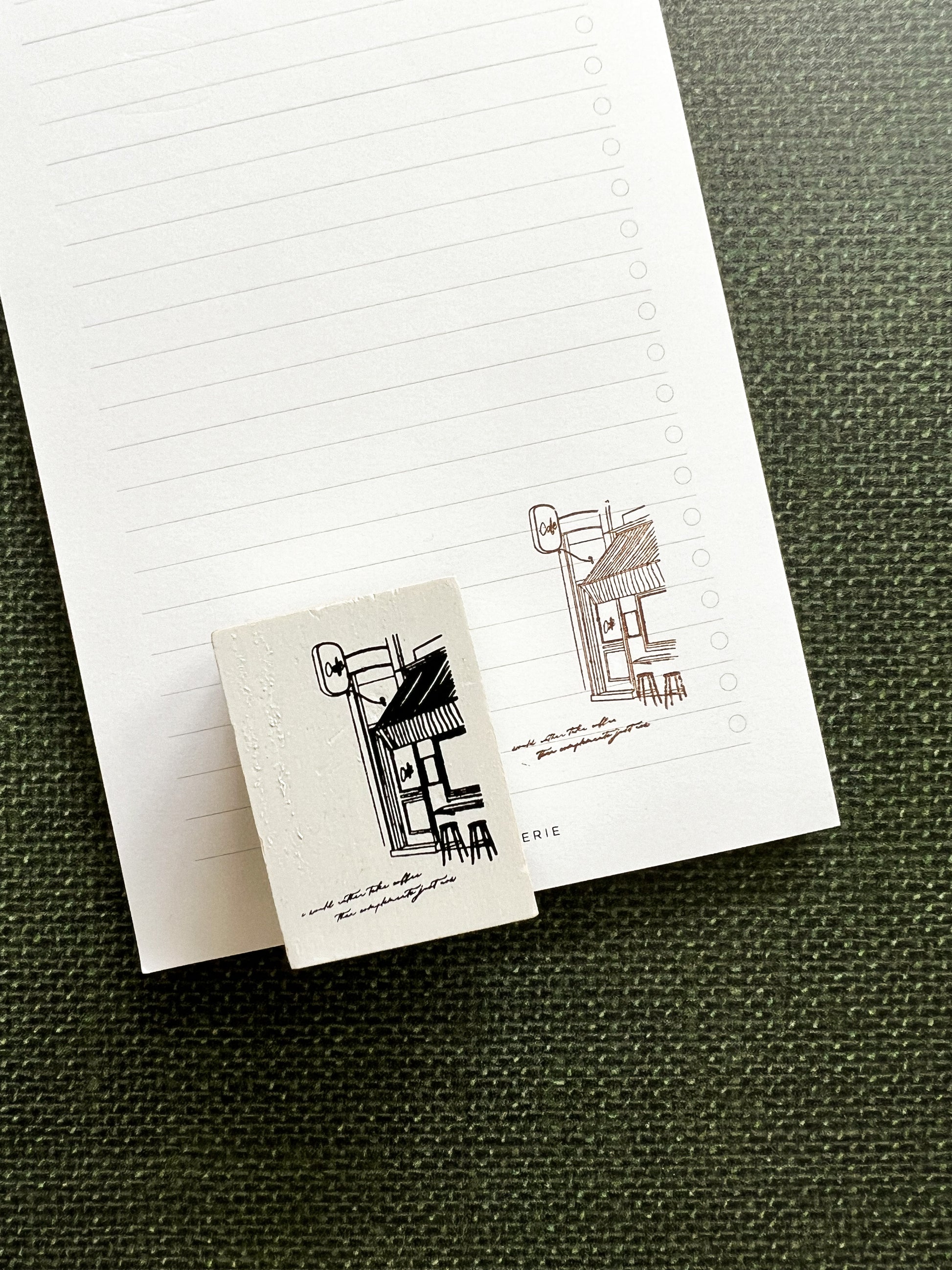 July Stationery subscription special item - cafe store front rubber stamp