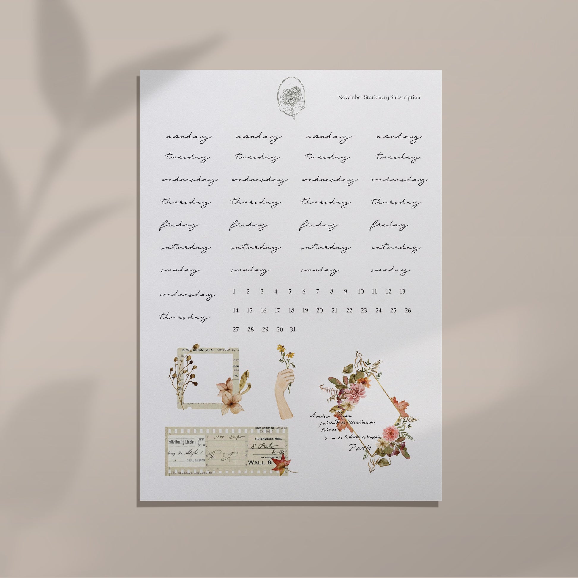 Printed on washi paper (semi-transparent and writable) or premium soft white paper. Please see reference photos for the premium soft white, we've switched the paper colour to a warmer tone for better blending in with most planner/journal.
