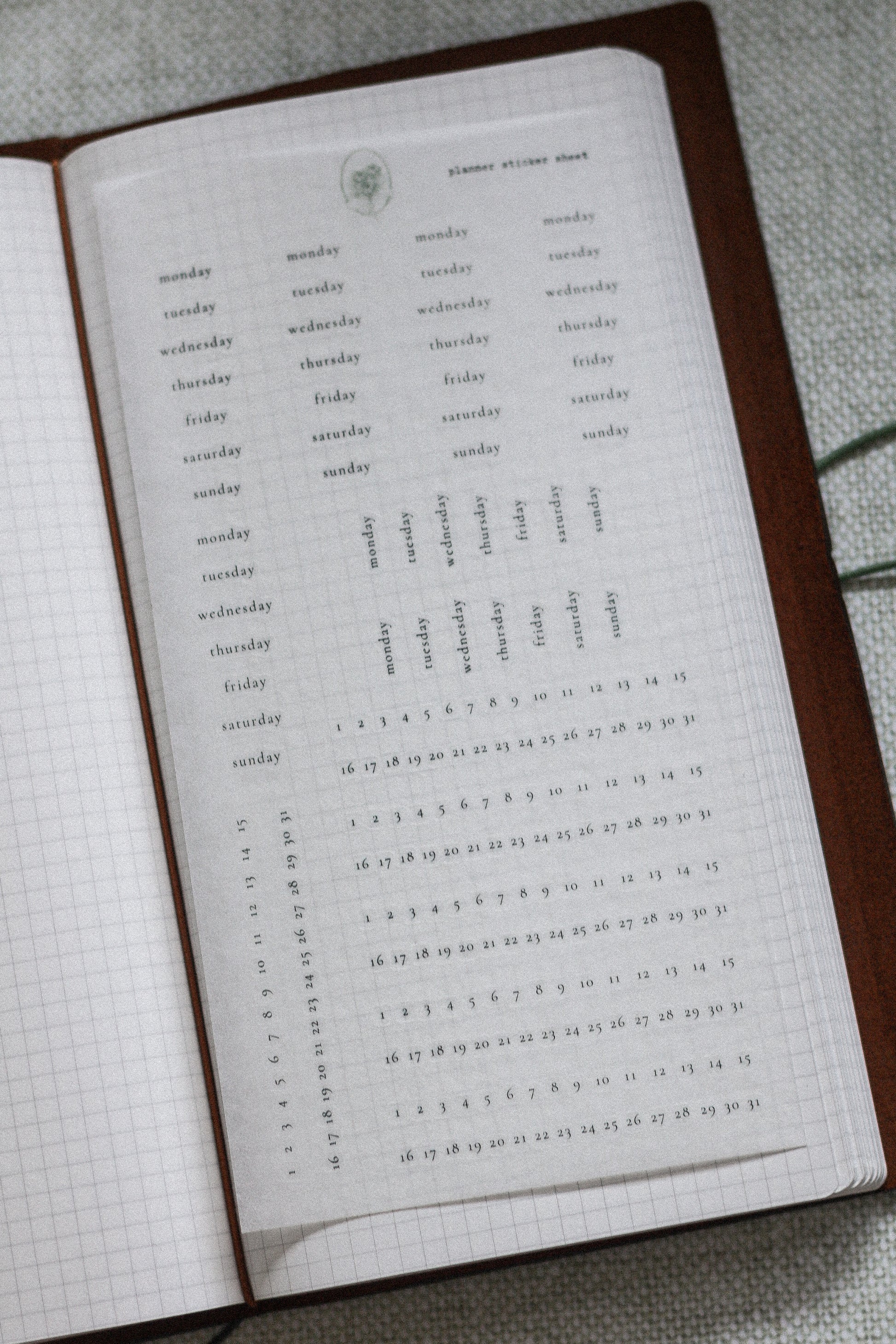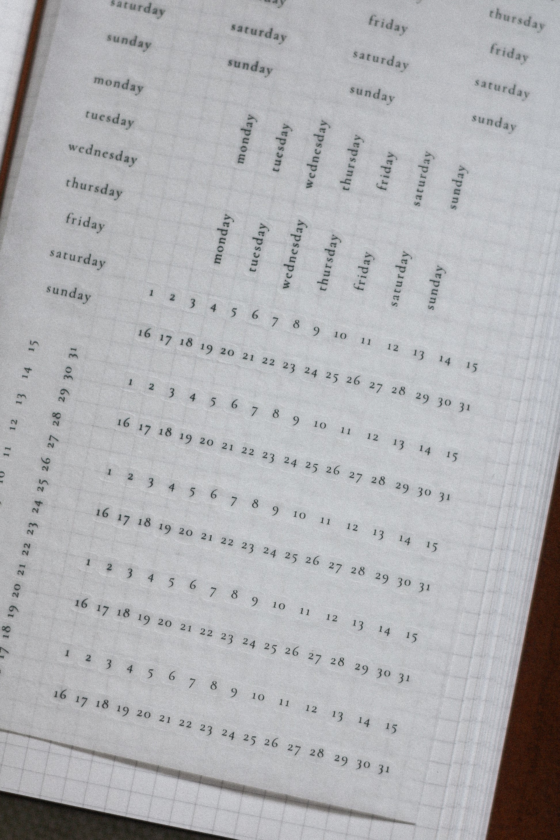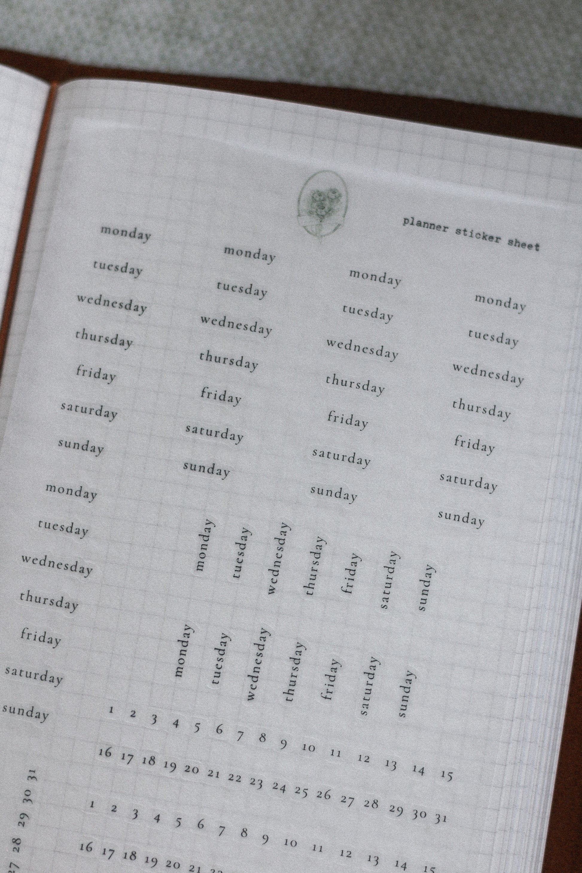 Planner Funtional stickers - days and dates (six months)