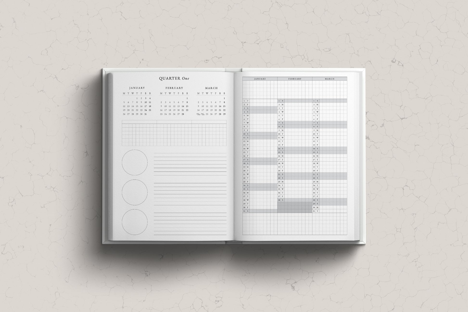 - Quarterly Layout: Helps you plan and track your goals throughout the year.