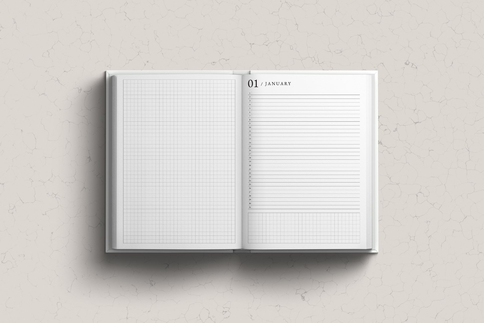 - 78 Grid Daily/Note Pages: Allows for flexibility in daily planning or collection notes.
