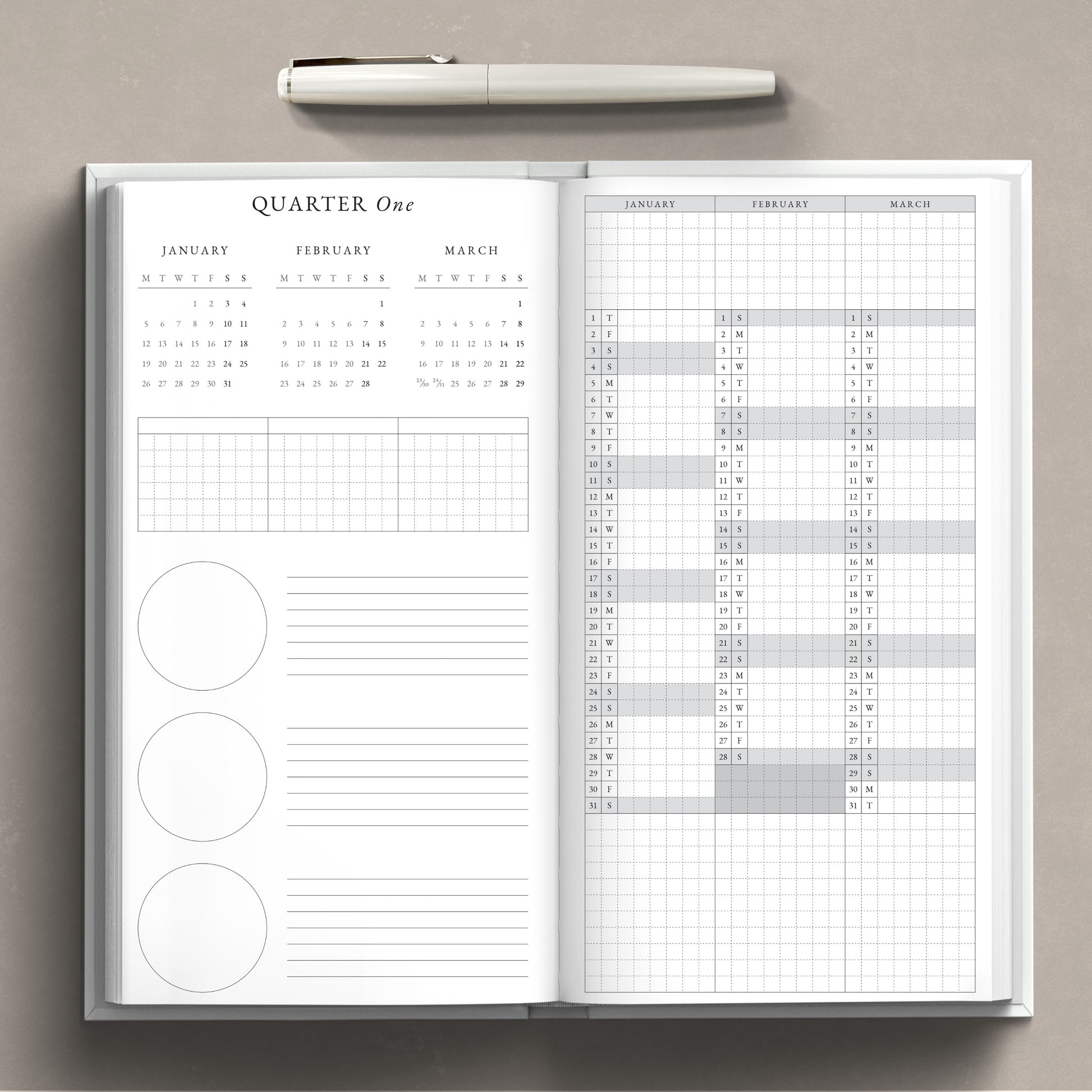 - Quarterly Layout: Helps you plan and track your goals throughout the year.
