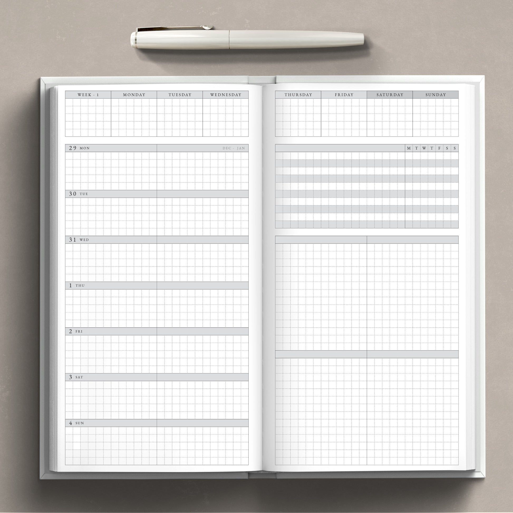 Start your 2026 right with an innovative and carefully designed all-in-one planner! The TN full year planner is a unicorn planner to help you organize your life in one book because of its flexible layout. We tested our layout back and forth for a long time and are so excited to present you with our brand new functional layout with a grouped weeklies and dailies! This means you can plan out your weeks, keep everything on track, and also have extra pages for you to memory keep or track your day in a free grid format. Our design is minimal and functional, you will be sure to find it to be a fantastic all-in-one planner!