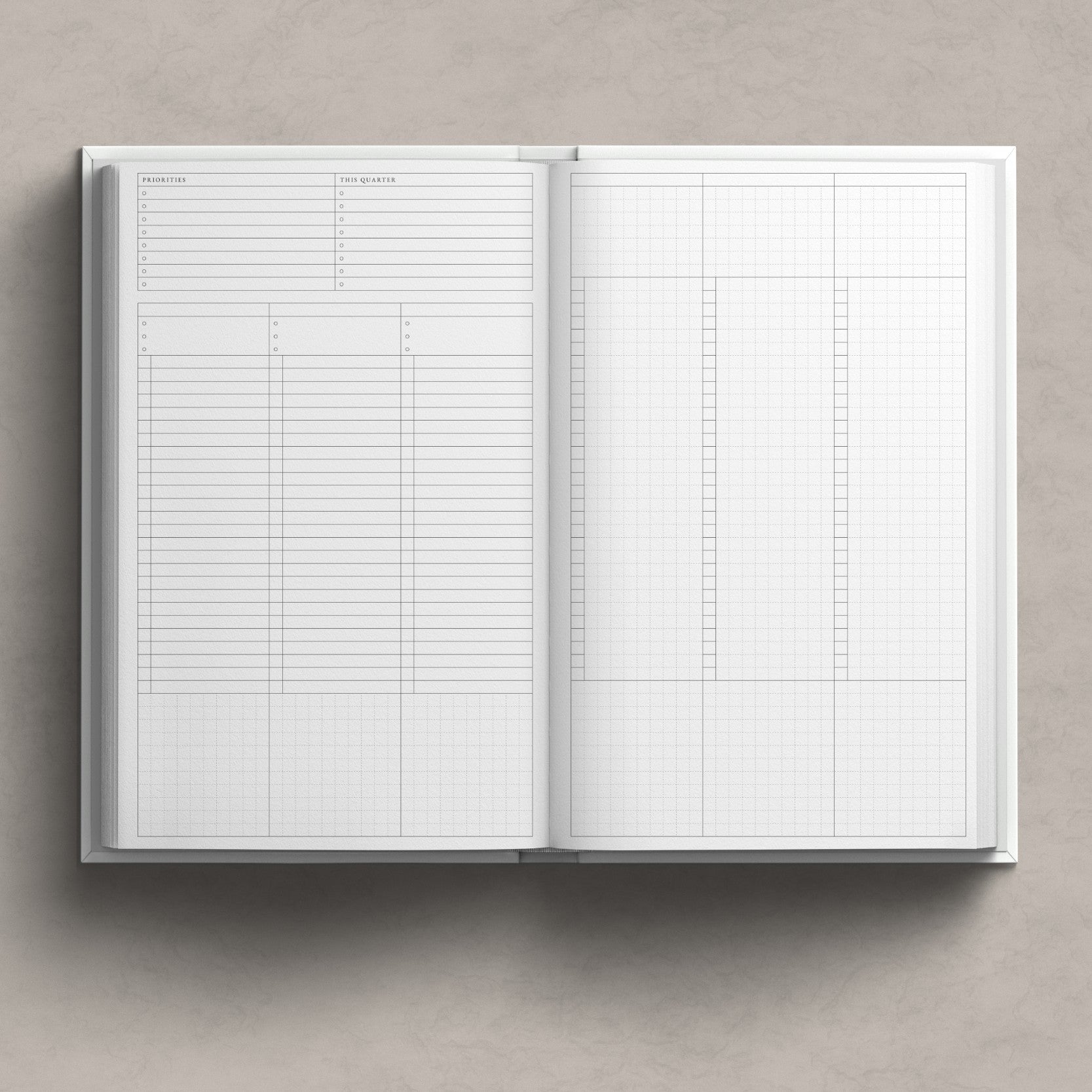 - Quarterly Layout: Helps you plan and track your goals throughout the year.