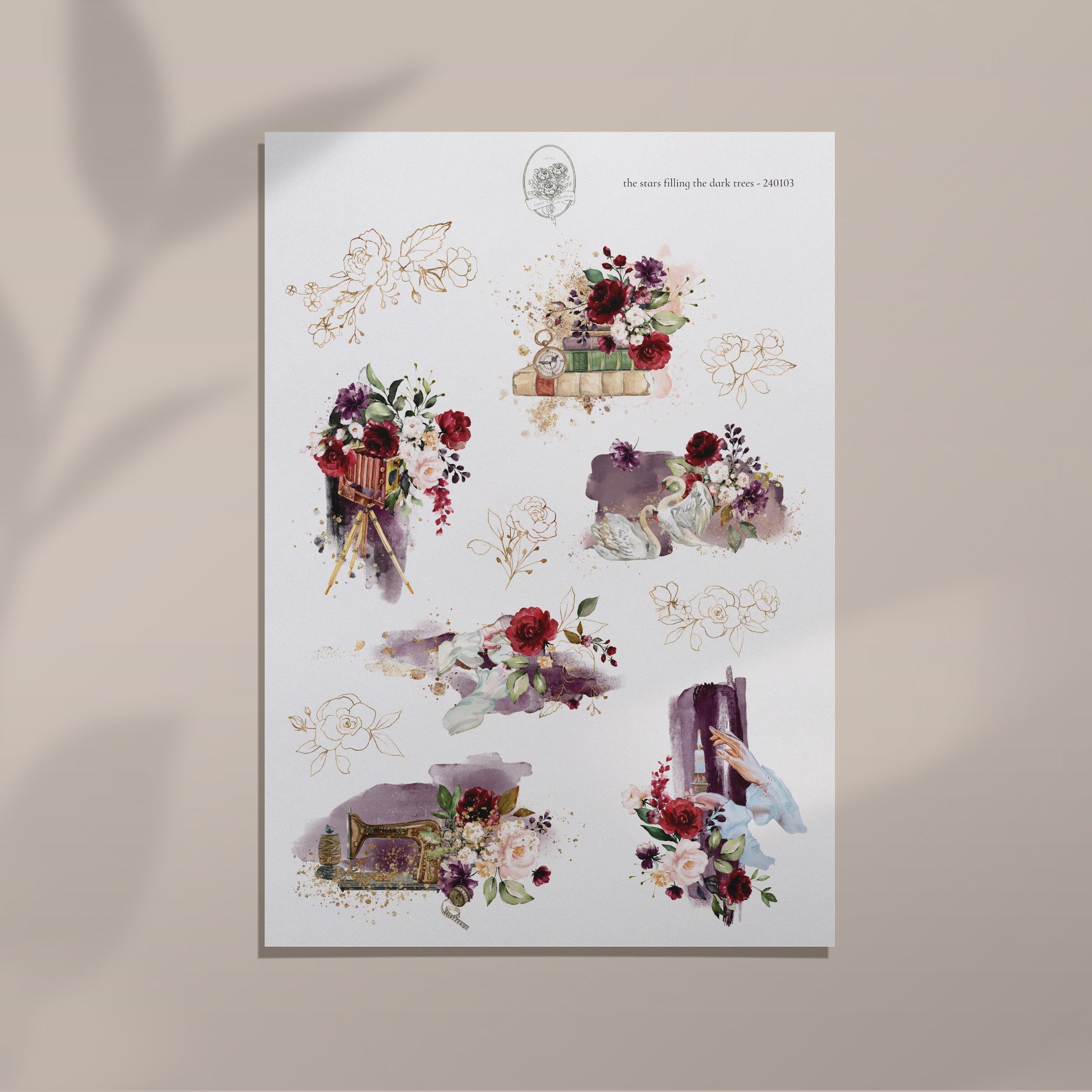 the stars filling the dark trees - Burgundy Floral Large Elements